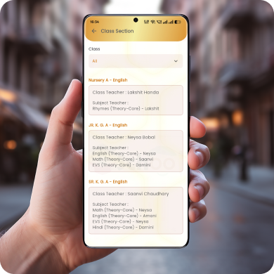 The Class Section feature allows teachers to easily access and manage their assigned class sections, view student lists and subject details, switch between sections for attendance and assessments, and maintain an organized and efficient teaching workflow.