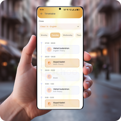 The Class Timetable feature allows teachers to easily view their daily and weekly teaching schedules, including subjects, class sections, time slots, and classroom details, helping them track upcoming lectures, manage free periods, and plan their teaching activities efficiently.