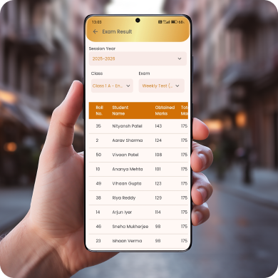 The Exam Result feature allows teachers to view, manage, and publish student examination results with subject-wise and overall performance details, helping ensure accurate evaluation, transparent result sharing, and easy academic progress monitoring.