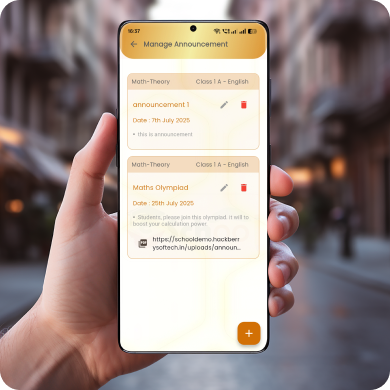 The Manage Announcement feature enables teachers to create and share important notices related to classes, exams, events, and activities, target announcements to specific sections, and ensure timely, clear communication with students and parents through a single, organized platform