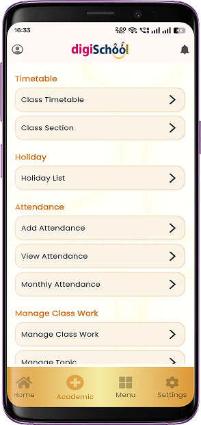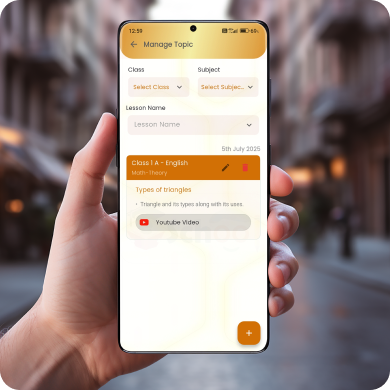 The Manage Topic feature allows teachers to organize, add, and update subject topics according to the syllabus, track topic progress, and plan lessons efficiently to ensure complete and structured syllabus coverage.