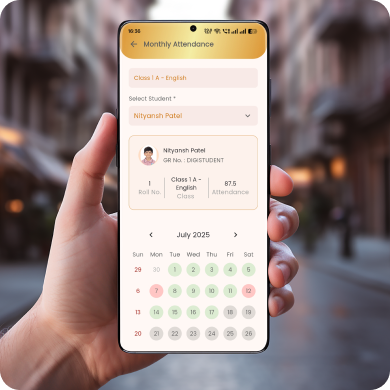 The Monthly Attendance feature allows teachers to view and track student attendance for the entire month in a single view, helping them monitor present, absent, and leave records accurately and support better academic reporting.